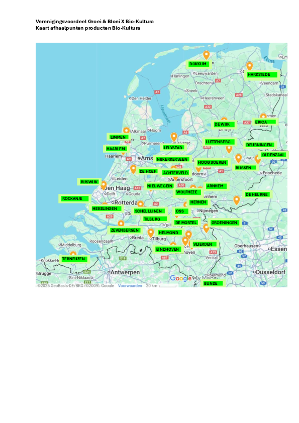 Vanaf maandag 24 november 2025 kunnen leden hun bestelling plaatsen in de webshop van Groei & Bloei https://shop.groei.nl/login en kiezen uit één van de 33 afhaalpunten in het land, zie kaart onder aan deze bladzijde. In februari 2026 kunnen de bestellingen daar opgehaald worden. Ook in Achterveld en Nijkekerveen zijn afhaalpunten. De adressen worden bekend gemaakt op het moment dat de bestellingen kunnne worden afgehaald.
